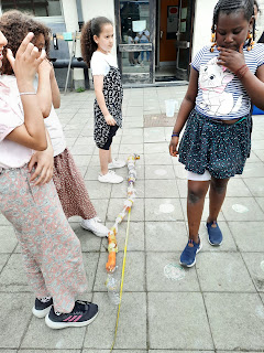 Onze leerlingen kregen de opdracht op een waterglijbaan te maken van de waterton naar de bloembakken. Deze moest aan een aantal criteria voldoen: minstens 2m lang zijn, 1l en 50cl kunnen vervoeren en zo weinig mogelijk waterglijbaan verspillen. De leerlingen gingen enthousiast aan de slag!